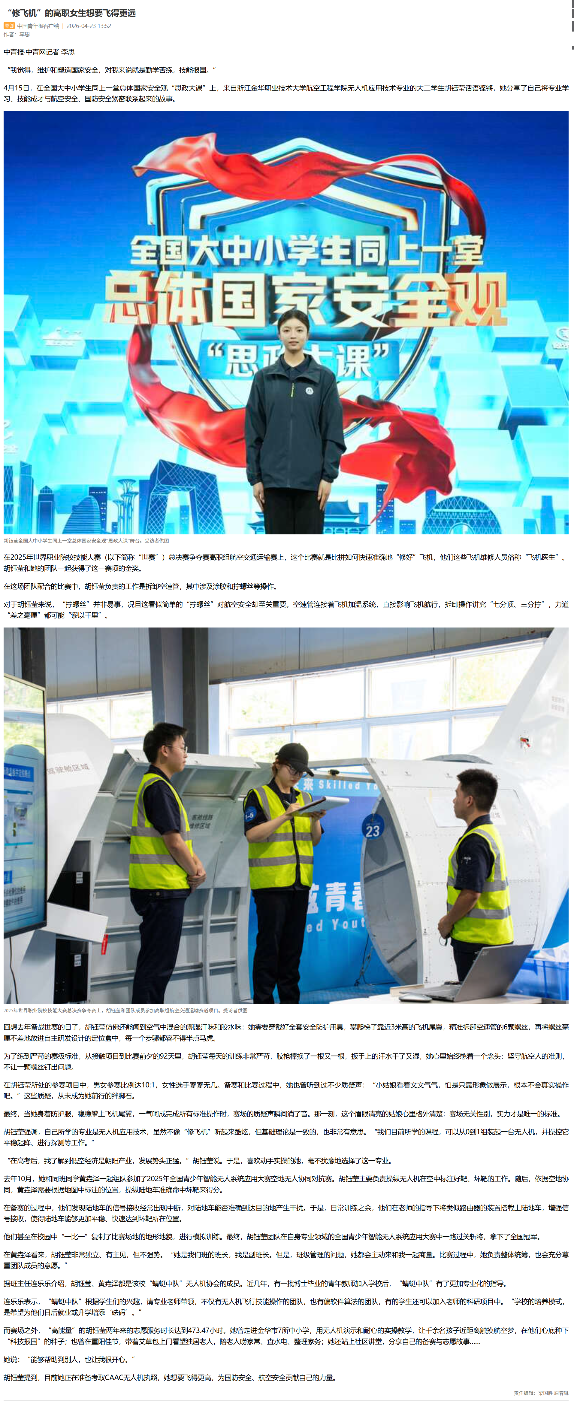 中国青年报客户端:“修飞机”的高职女生想要飞得更远