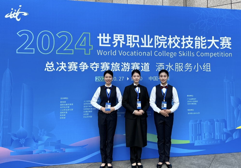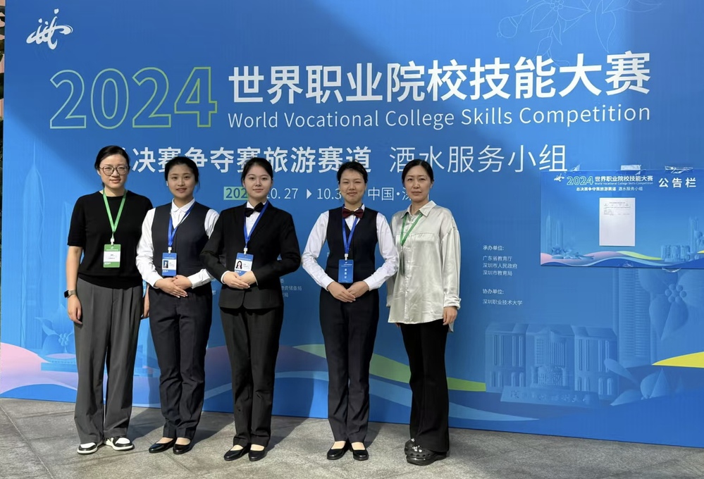 10月30日,世界职业院校技能大赛总决赛争夺赛旅游赛道一(酒水服务小组)圆满落幕。本次大赛共有来自全国的57支优秀的代表队参与。由金职大文旅学院徐婷、孟玲两位老师指导,胡丹妮、徐佳雯、周佳璐三位同学组成参赛队获得铜奖。