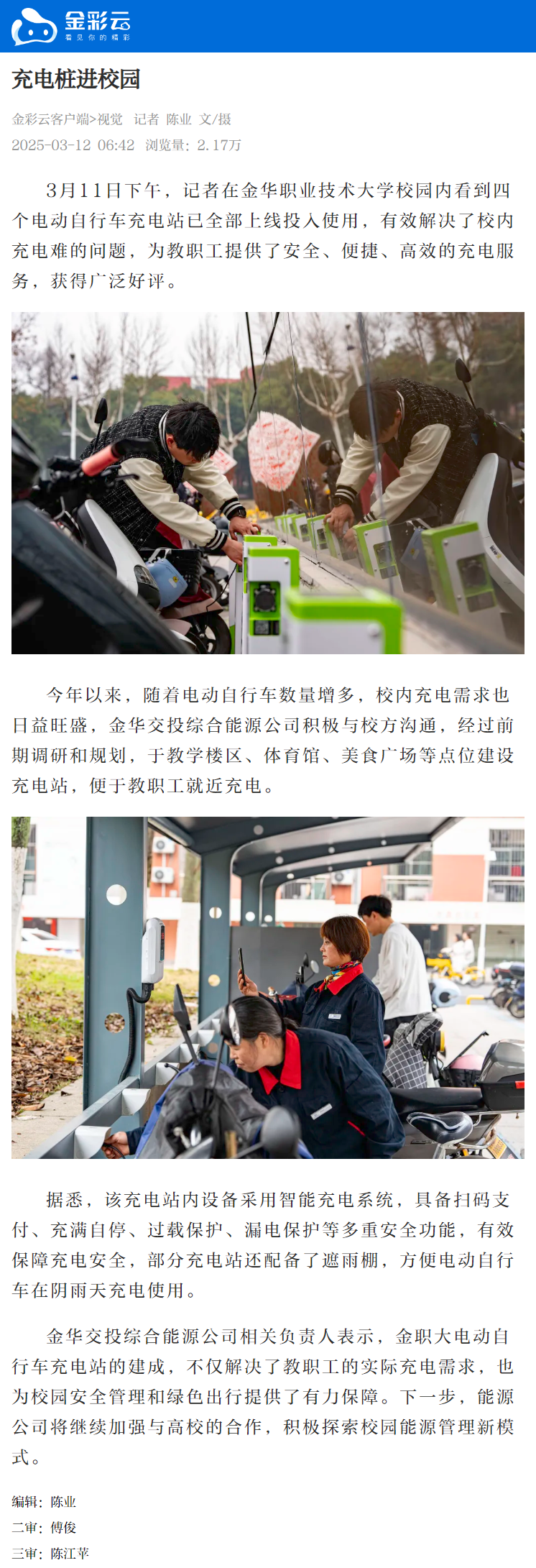 金彩云客户端:充电桩进校园