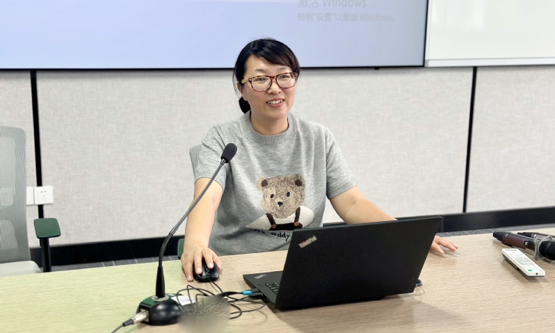在培训过程中,李颖通过对典型案例的拆解分析,详细讲解了专业翻译技巧,其中重点分享了自查清单的使用方法、汉语结构转码为英语结构的核心技巧,以及高频难点的处理策略。此外,她还向在座教师推荐了查重、降重和润色实用工具,为教师们提高翻译效率提供了技术支持。