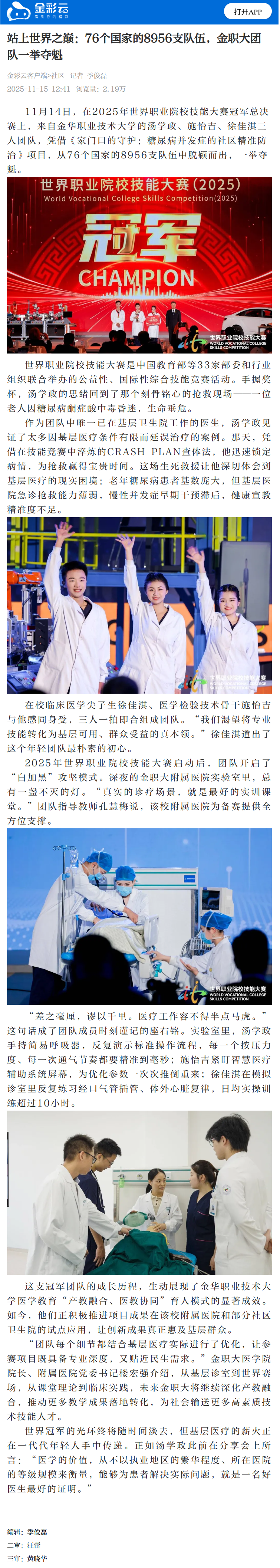 金彩云客户端:站上世界之巅:76个国家的8956支队伍,金职大团队一举夺魁