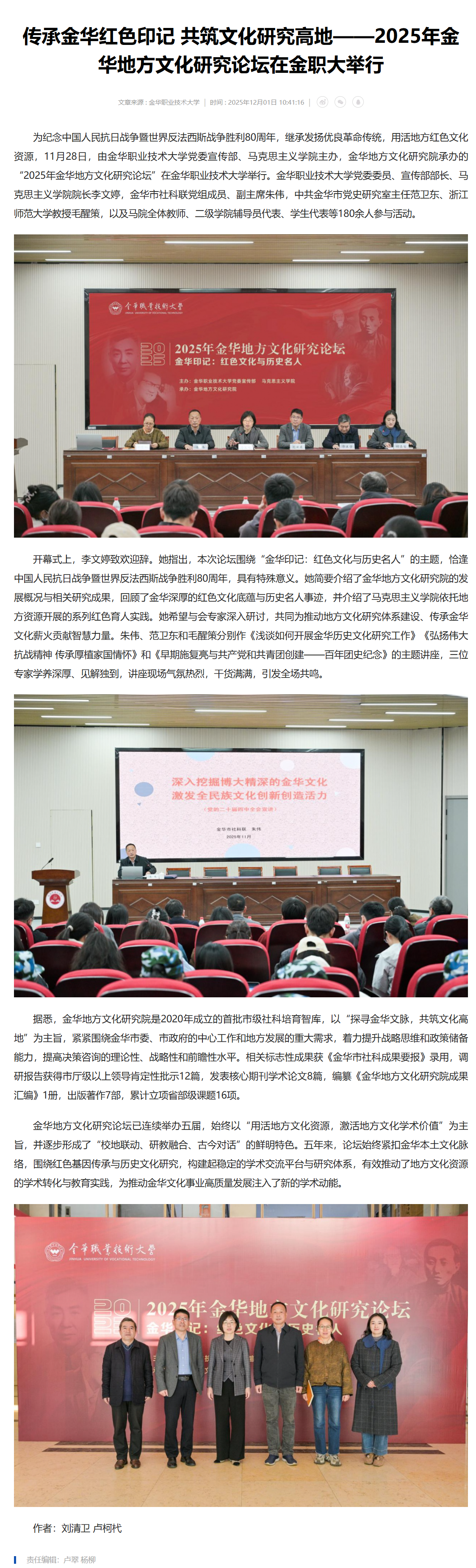 中国教育在线:传承金华红色印记 共筑文化研究高地——2025年金华地方文化研究论坛在金职大举行