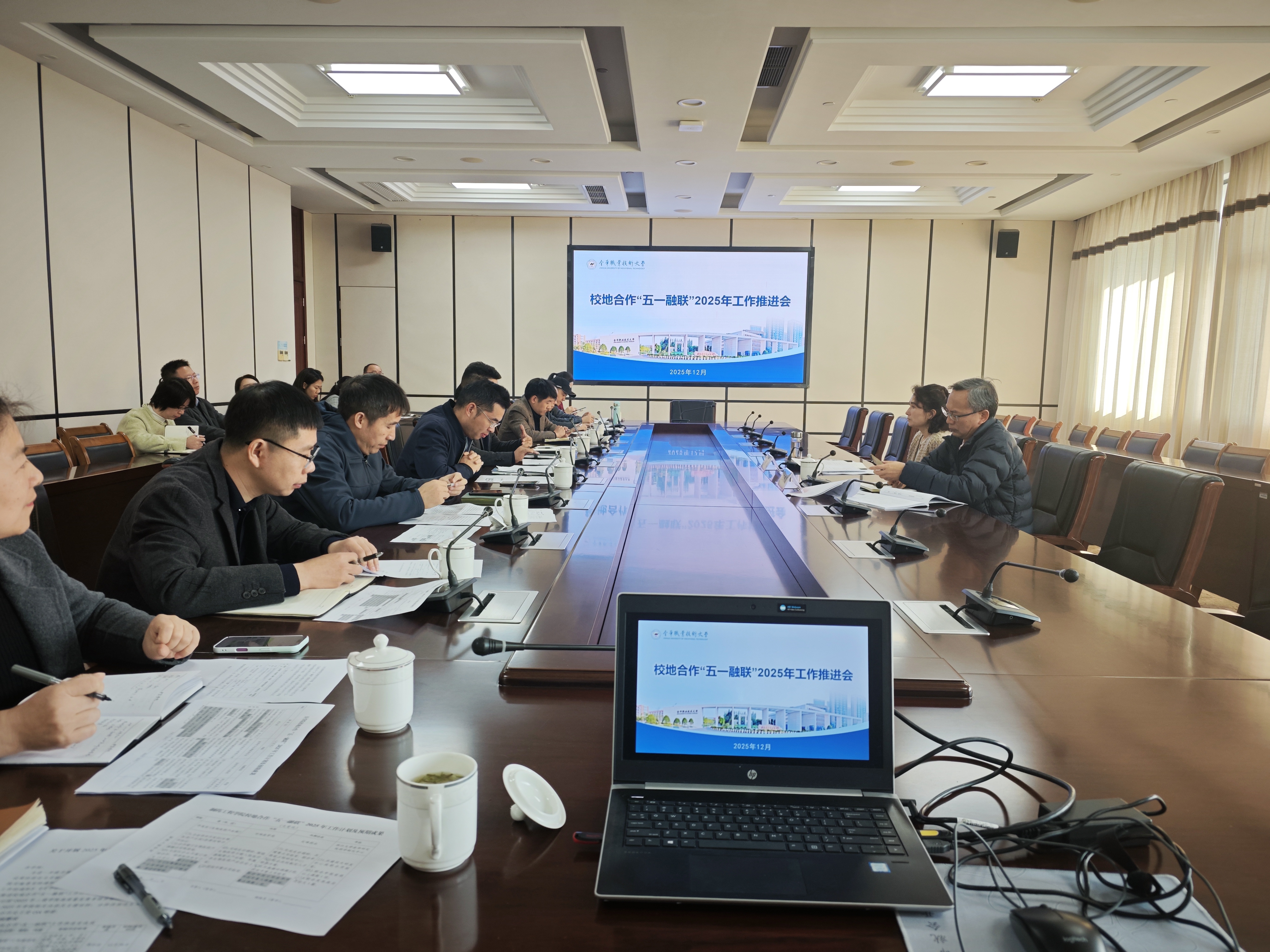 为进一步深化服务地方,总结推进校地合作“五一融联”工作,12月10日,学校召开校地合作“五一融联”2025年度工作推进会。学校副校长陈夙,发规处、继教处负责人,各二级学院分管领导、联络员参加会议。