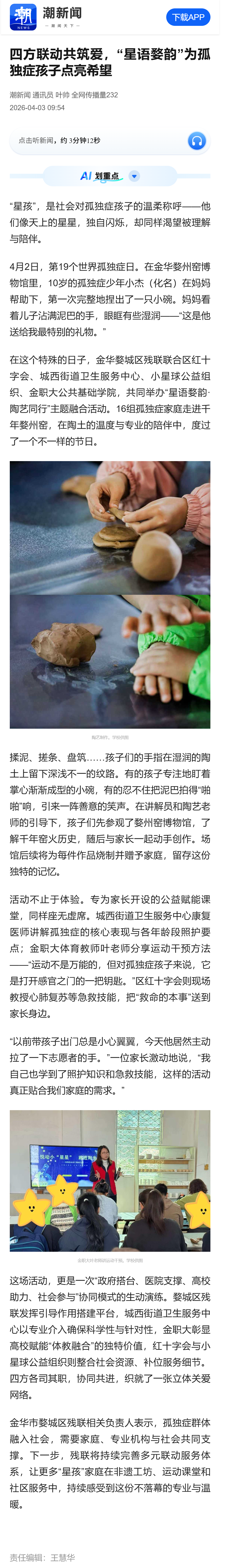 潮新闻:四方联动共筑爱,“星语婺韵”为孤独症孩子点亮希望