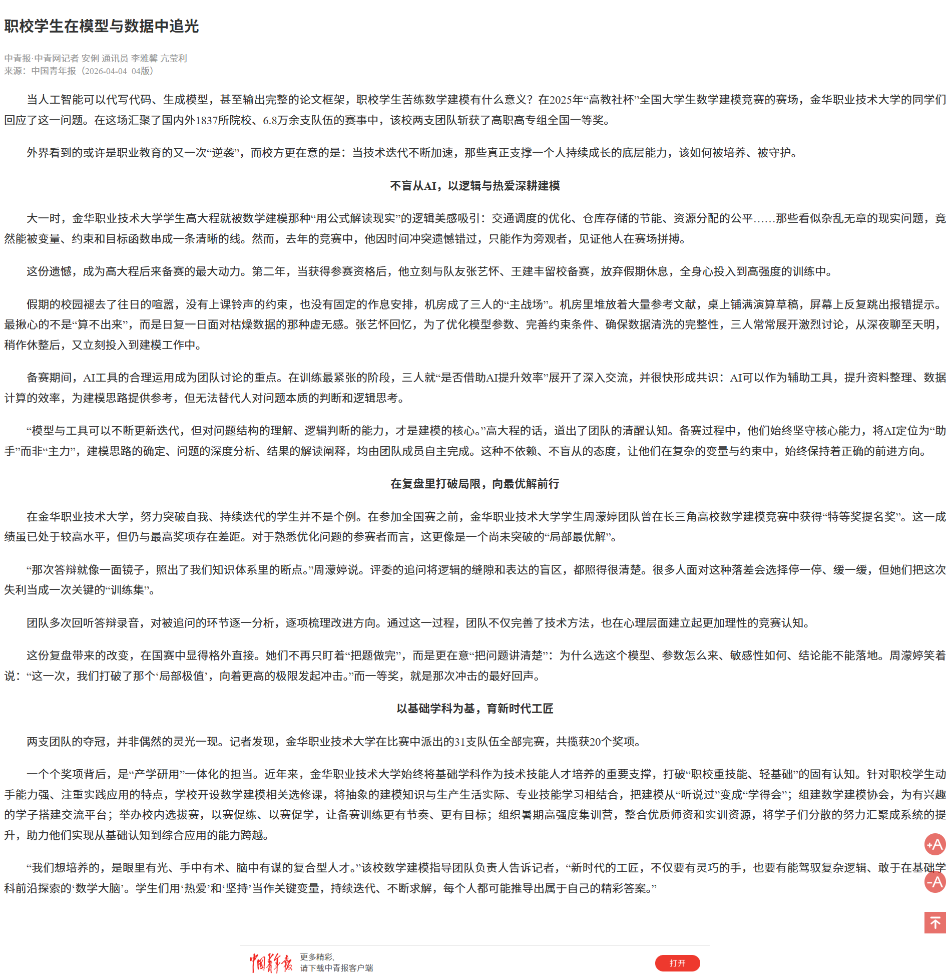 中国青年报:职校学生在模型与数据中追光