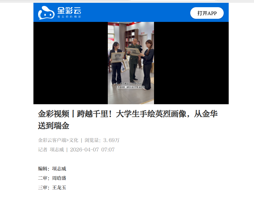 金彩云客户端:金彩视频丨跨越千里!大学生手绘英烈画像,从金华送到瑞金