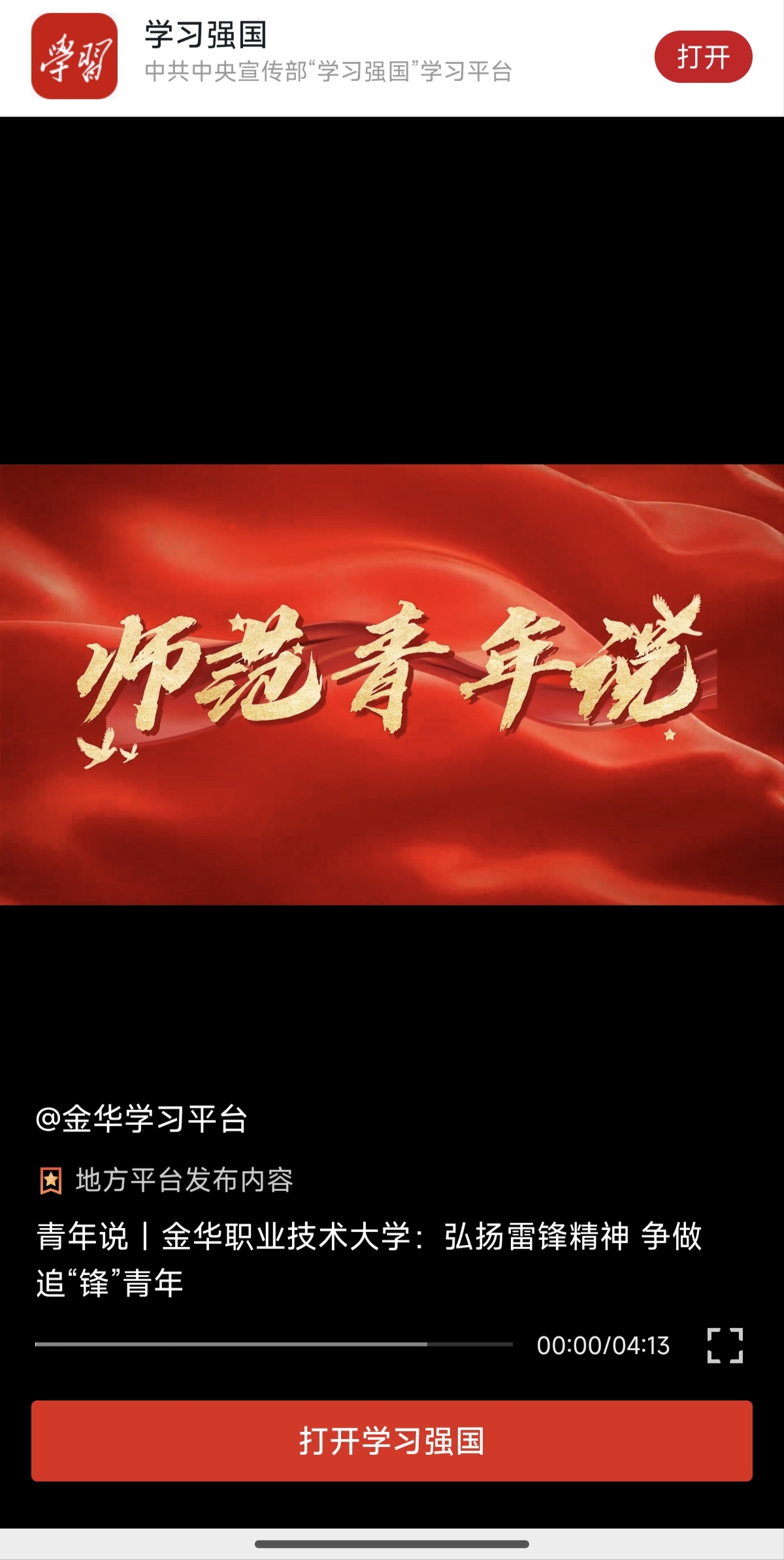 学习强国 金华学习平台:青年说丨金华职业技术大学:弘扬雷锋精神 争做追“锋”青年