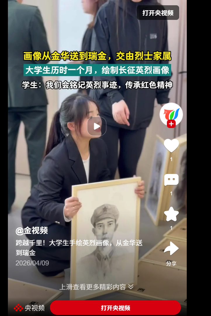 央视频:跨越千里!大学生手绘英烈画像,从金华送到瑞金