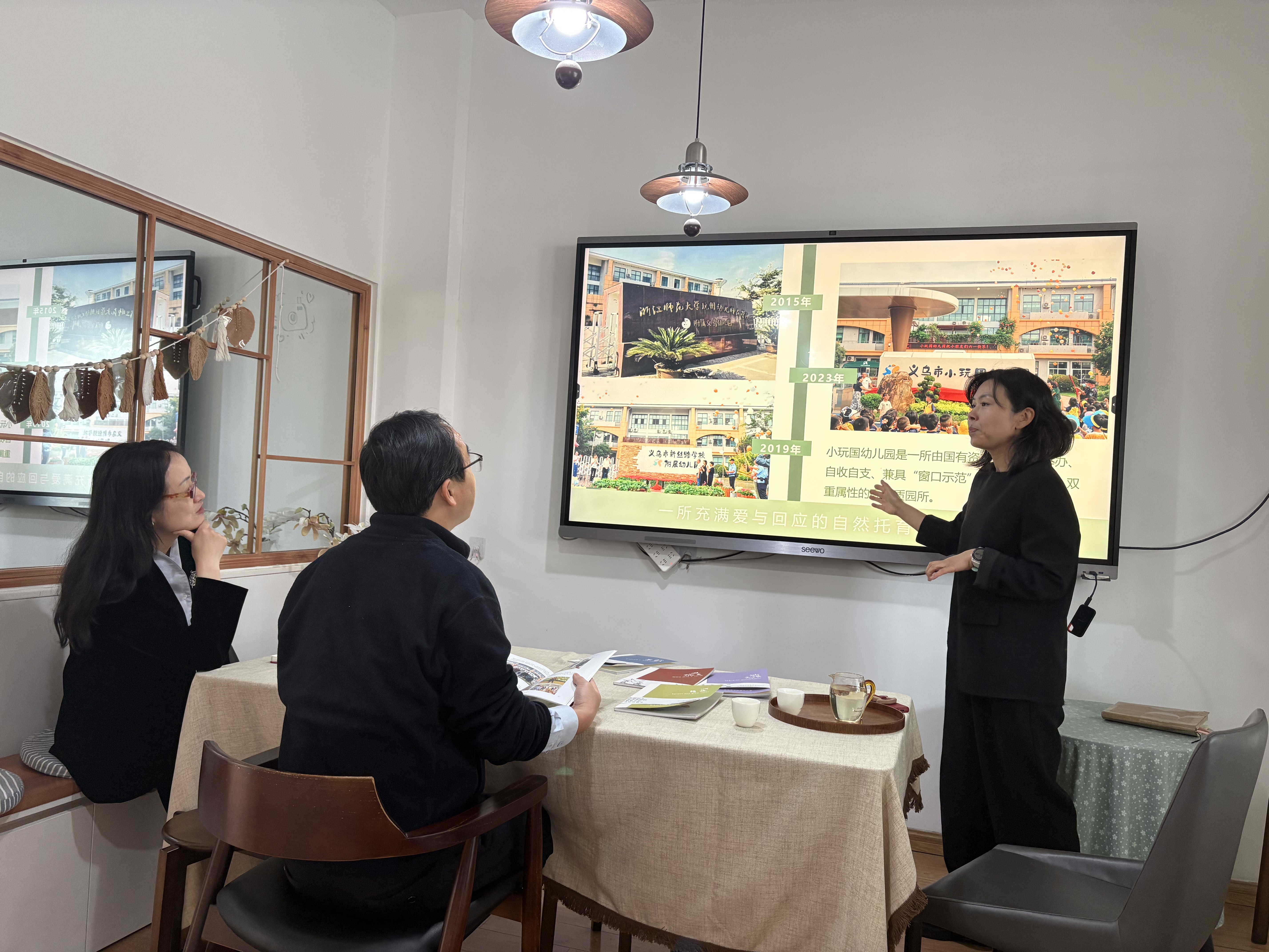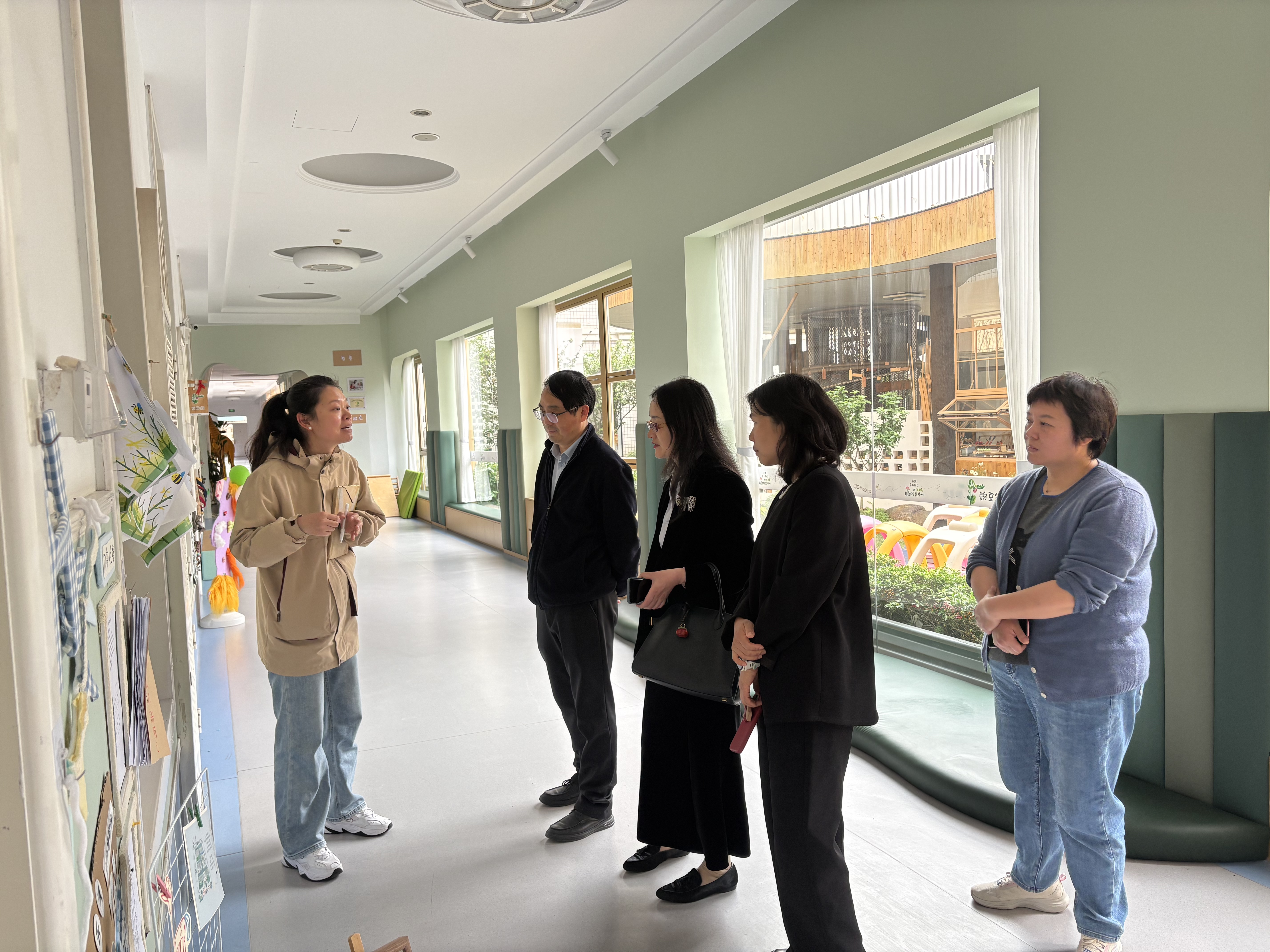 在斯玉玲园长的陪同下,师范学院一行实地考察了幼儿园的整体环境建设,重点参观了活动室、户外游戏区及特色功能教室,深入了解了幼儿园的发展历程、办园特色及教育理念。据介绍,义乌市小玩国幼儿园以“游戏化学习、个性化发展”为办园特色,注重幼儿自主探索与多元智能培养,在当地享有良好的社会声誉。