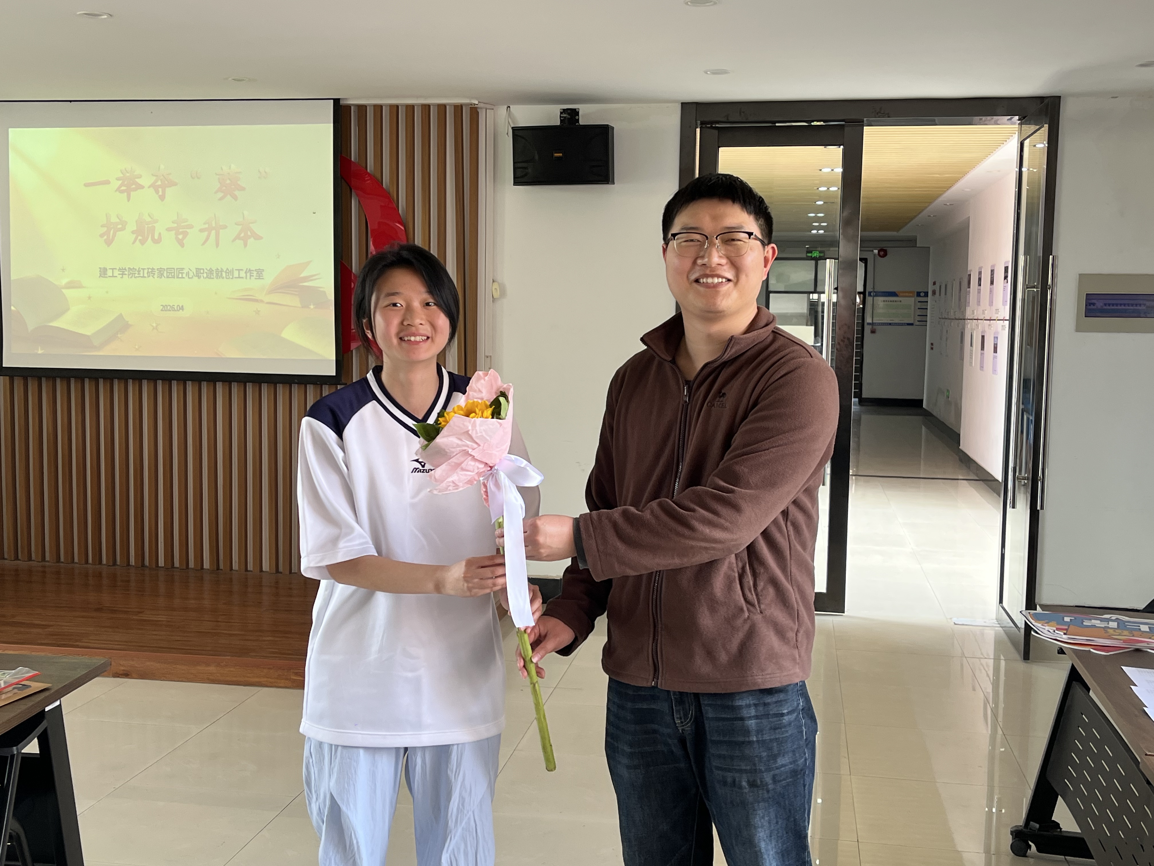 2026年专升本考试临近,为帮助考生缓解考前焦虑、坚定备考信心,建工学院依托红砖家园一站式社区,精心策划了一场“暖心助考”系列活动。从寓意“一举夺魁”的向日葵,再到辅导员班主任下寝的贴心关怀,让考生真切感受到“奋斗路上从不孤单”。