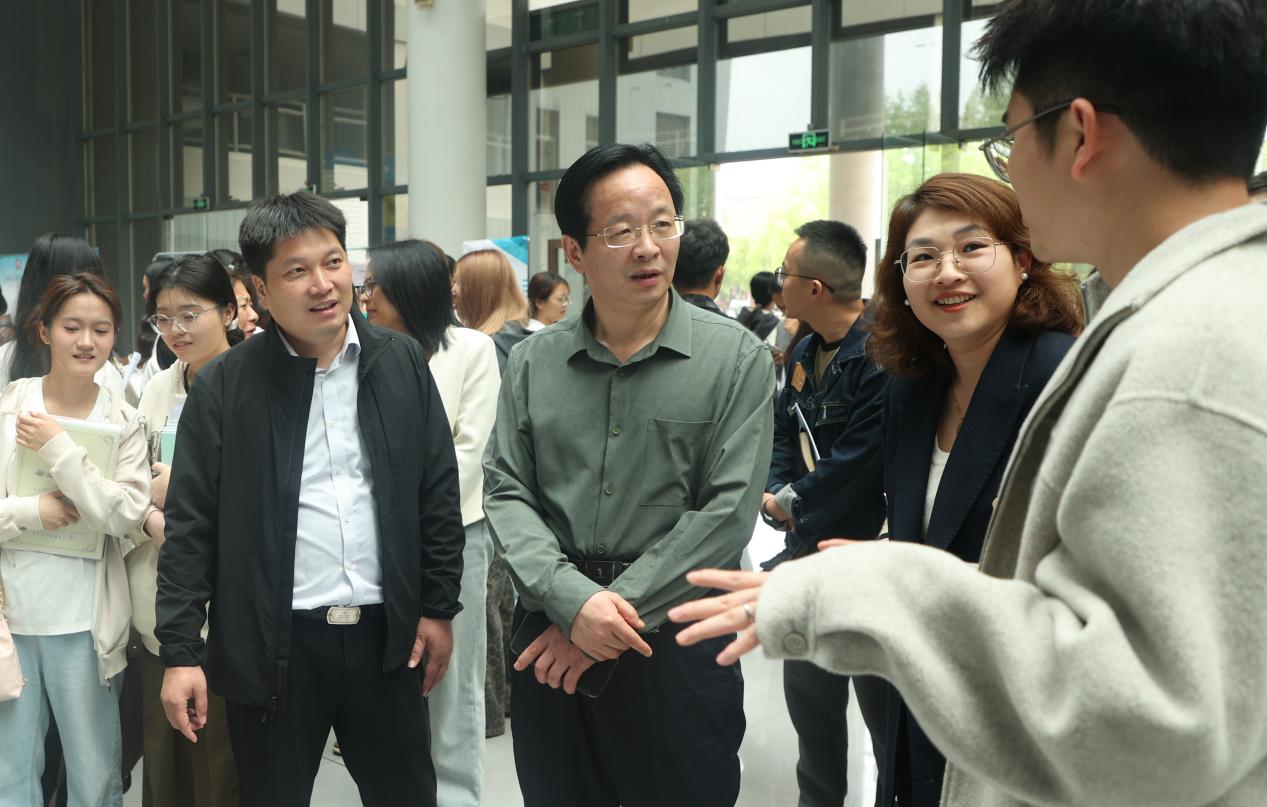 招聘会现场,校党委书记王振洪与参会医疗机构代表及毕业生面对面交流,并向各用人单位对学校就业工作与人才培养的长期支持表示衷心感谢。在听取多家单位对金职大毕业生专业素养、岗位适配度与发展潜力的积极反馈后,他强调,学校始终将毕业生就业置于重中之重,持续深化产教融合,优化护理类专业人才培养体系,着力构建校企协同、供需对接的育人新机制,共同打造可持续、良性循环的“人才共育生态圈”,全面提升学生的职业竞争力与适应力。他勉励学子抓住健康产业发展机遇,夯实专业功底、提升综合能力,在护理岗位上践行使命、实现价值。