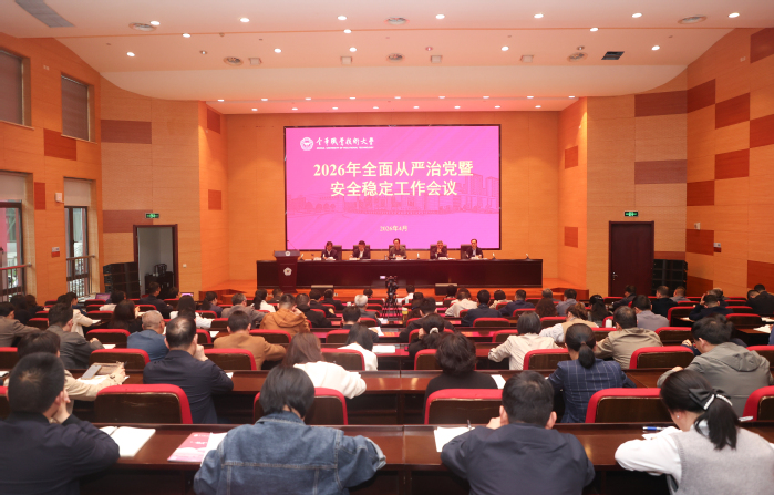 4月13日,学校召开2026年全面从严治党暨安全稳定工作会议。会议深入学习贯彻习近平总书记关于党的自我革命的重要思想、全面从严治党的重要论述,贯彻落实二十届中央纪委五次全会、省纪委十五届五次全会精神,研究部署2026年全面从严治党工作和校园安全稳定工作。校党委书记王振洪作重要讲话,校长梁克东主持,学校党政领导班子成员出席。
