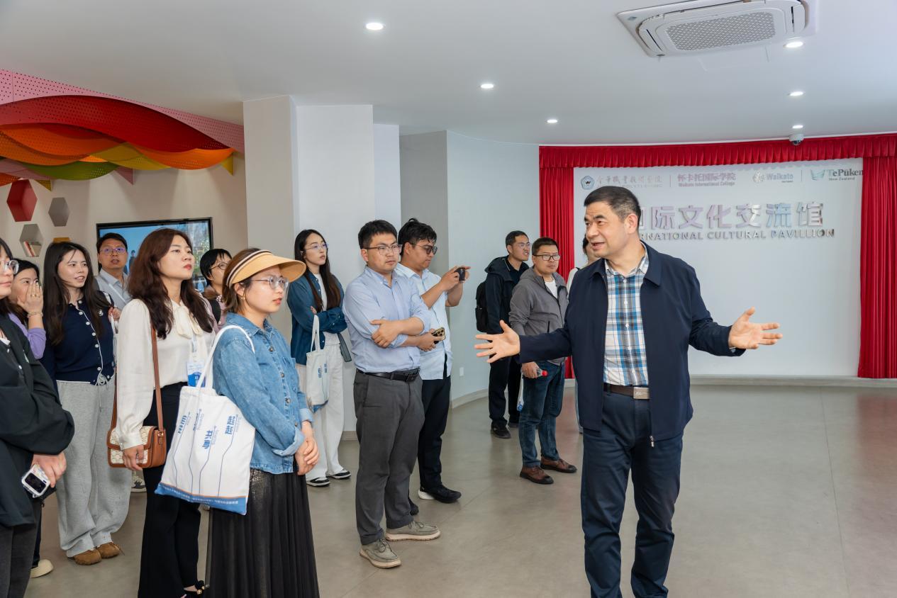 沈阳大学校长赵彦志教授等8位领域专家作专题报告,涵盖办学申报、法律规范、人才培养等多个维度,就中外合作办学中的重点难点问题进行了政策解读和经验分享。其中,学校怀卡托国际学院院长做题为《聚焦内涵、引进借鉴、特色发展——怀卡托国际学院办学实践》的专题报告。4月10日下午参训学员参观了学校国际文化交流馆、校史馆、智能化精密制造产业园等重点设施。